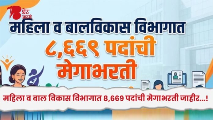 महाराष्ट्रात सरकारी नोकरीच्या शोधात असलेल्या उमेदवारांसाठी मोठी आनंदाची बातमी समोर आली आहे. राज्याच्या महिला व बाल विकास विभागामार्फत (WCD) मोठ्या प्रमाणावर भरती प्रक्रिया राबविण्यात येणार असून सुमारे ८६६९ पदांसाठी लवकरच अधिसूचना जारी करण्यात आली आहे. या भरतीमुळे विशेषतः महिला उमेदवारांना मोठी संधी उपलब्ध होणार आहे.