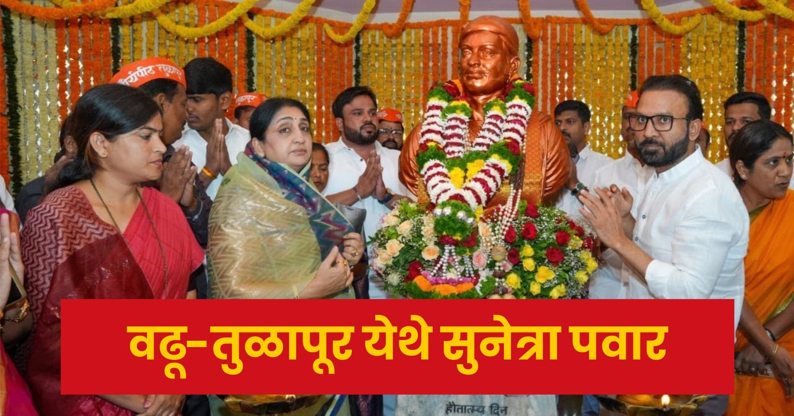संभाजी महाराज पुण्यतिथीनिमित्त वढू-तुळापूर येथे सुनेत्रा पवार यांचे अभिवादन; नागरिकांचा मोठा प्रतिसाद